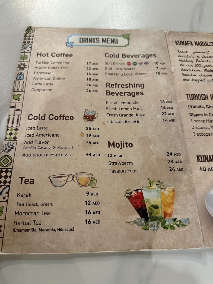 At Nablus - Traditional Kanafeh, the menu offers a delightful selection that balances simple café-style comfort with casual yet satisfying bites. The focus is on authentic Middle Eastern flavors, where traditional sweets and hearty wraps sit comfortably alongside refreshing teas and carefully brewed coffee.